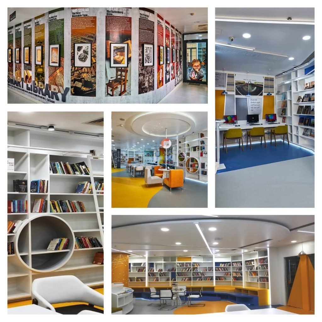 1. RFID Technology: Smart kiosks for book issues and a 24×7 dropbox for returns make the library accessible around the clock.