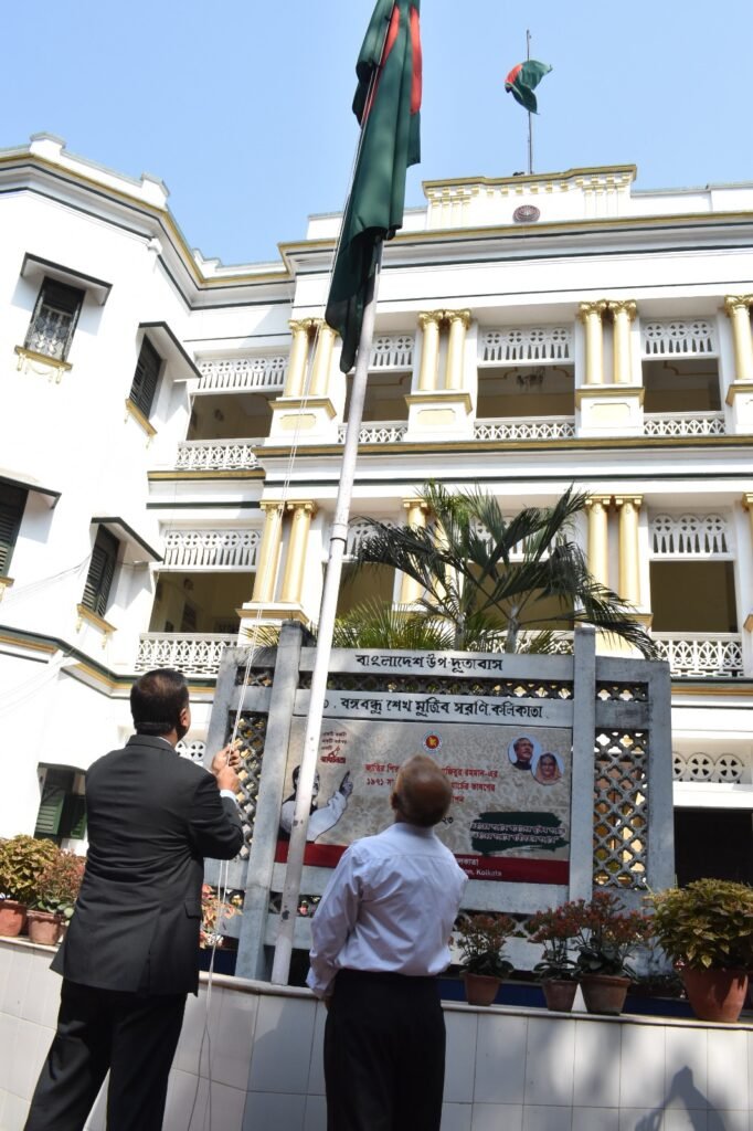 KOLKATA: Bangladesh Deputy High Commission in Kolkata organized a host of programs to commemorate the 52nd anniversary of historic 7th March speech of the Father of the Nation Bangabandhu Sheikh Mujibur Rahman. The program included national flag raising in the morning which was followed by laying floral wreath at the bust of Bangabandhu at the ‘Mujib Chiranjeeb’ and offering special prayers at the Mission premises.