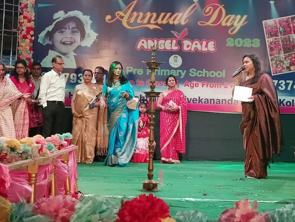 কলকাতার কেষ্টপুরের এঞ্জেল ডেল প্রি-প্রাইমারি স্কুলের বার্ষিক সাংস্কৃতিক অনুষ্ঠান অনুষ্ঠিত হল। স্কুলের প্রধান বীথিকা দে’র ব্যবস্থাপনায় গোটা অনুষ্ঠান অনুষ্ঠিত হয়। নাচে গানে অংশ নিয়েছিল ওই স্কুলের খুদে পড়ুয়ারা। কচিকাঁচাদের অনুষ্ঠান দেখতে এলাকায় ভিড় জমিয়েছিলেন সাধারণ মানুষ। জমজমাট হয়ে উঠেছিল এই অনুষ্ঠান। কেষ্টপুর এলাকায় অন্যতম নামি এই কচিকাঁচাদের স্কুলের অনুষ্ঠান ঘিরে ছিল উৎসাহ উন্মাদনা। অভিভাবকরা তাদের সন্তানদের নিয়ে হাজির হয়েছিলেন অনুষ্ঠানে। ছোট্ট ছোট্ট শিশুদের শৈশব উঠে এসেছিল অনুষ্ঠানের ভাবনায়। উপস্থিত হয়েছিলেন বিশিষ্টজনেরাও। স্কুলের প্রধান বিথিকা দে বলেন, পড়াশোনার পাশিপাশি মানুষ গড়ে তোলার কাজ করে চলেছেন তারা। একটা শিশু ছোট থেকে যাতে প্রকৃত মানুষ হয়ে উঠতে পারে সেই শিক্ষা দিয়ে থাকেন তারা। অনুষ্ঠানে উপস্থিত হয়েছিলেন বিশিষ্ট অভিনেত্রী তথা পরিচালক সনু দাস। তিনি বলেন বাচ্চাদের এই অনুষ্ঠানে যোগ দিতে তিনি খুশি। ছোটদের জন্য ছবি বানিয়েছেন সনু। নাম ছোট মুখে বড় কথা। খুব শীঘ্রই এই ছবি রিলিজ হতে চলেছে।